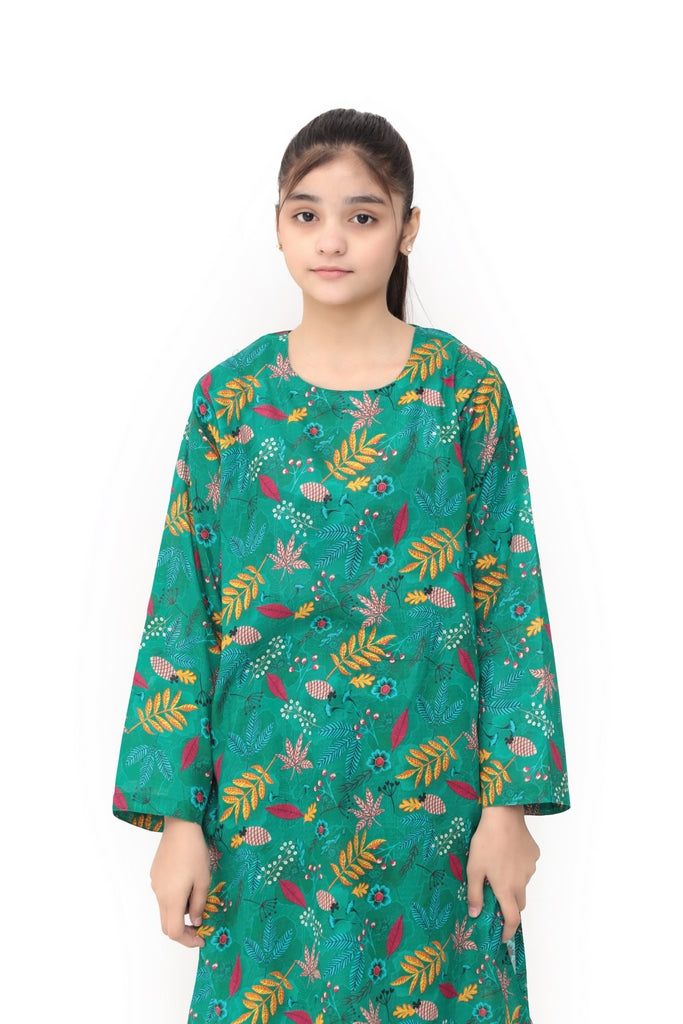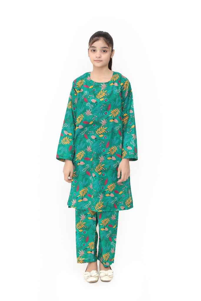 Liven up your little one's wardrobe with our Premium Quality Stitched 100% Soft Digital Lawn Green Colour Printed with Yellow Pink White Flowers on 2 pc suit ! Made from premium 100% Cotton for Summers, this suit is not only high-quality, but also comfortable for all-day wear Casuals and Formals. Perfect for any stylish girl, this 2 pc suit is a must-have.