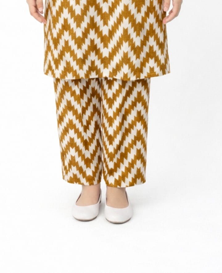 Plum Digital Lawn Mustard Off White Patterns On 2 Pc Stitched Suit for Girl's.