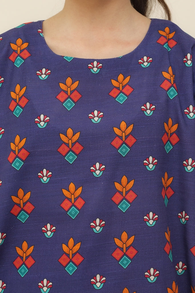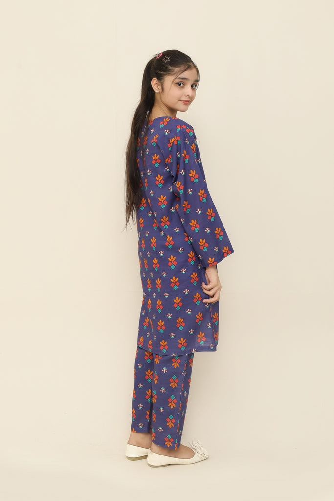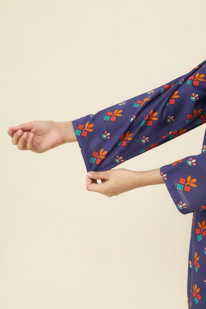 Liven up your little one's wardrobe with our Premium Quality Khaddar Colour Blue, Printed with Red Sky Blue Yellow Flowers on 2 pc suit ! For Winters, this suit is not only high-quality, but also comfortable for all-day wear Casuals and Formals. Perfect for any stylish girl, this Stitched 2 pc suit is a must-have.