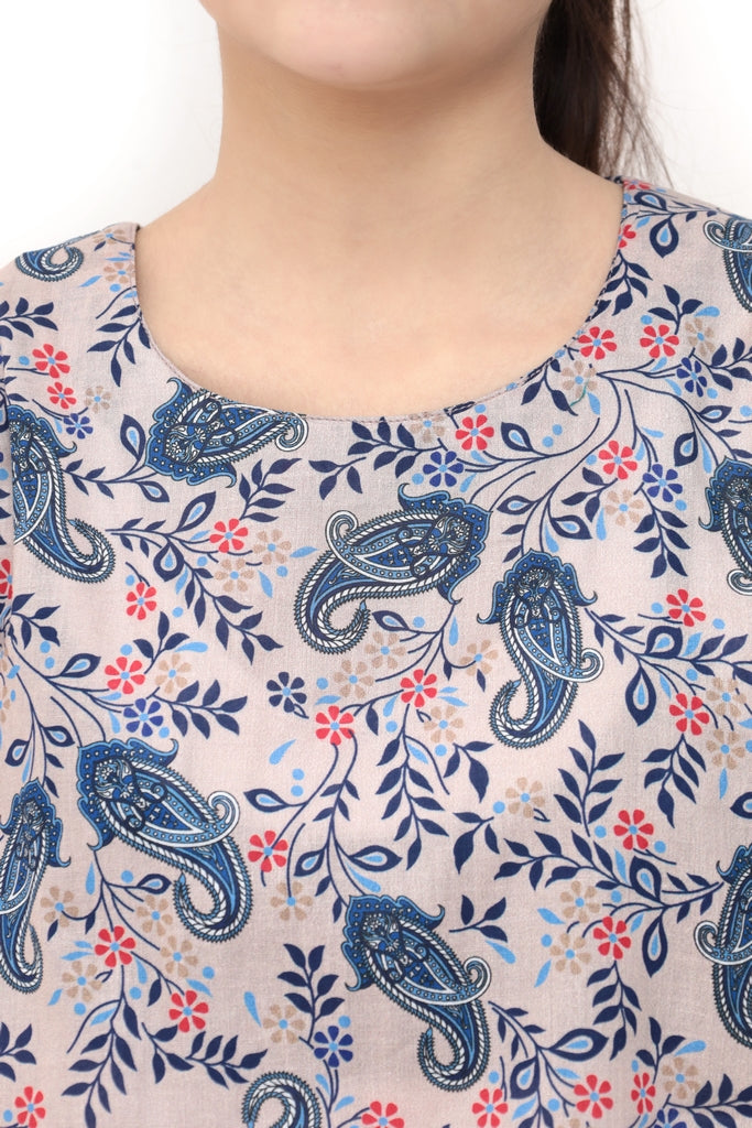 Liven up your little one's wardrobe with our Premium Quality Stitched 100% Soft Digital Lawn Light Grey Colour Printed with Blue Pink White Flowers on 2 pc suit ! Made from premium 100% Cotton for Summers, this suit is not only high-quality, but also comfortable for all-day wear Casuals and Formals. Perfect for any stylish girl, this 2 pc suit is a must-have.