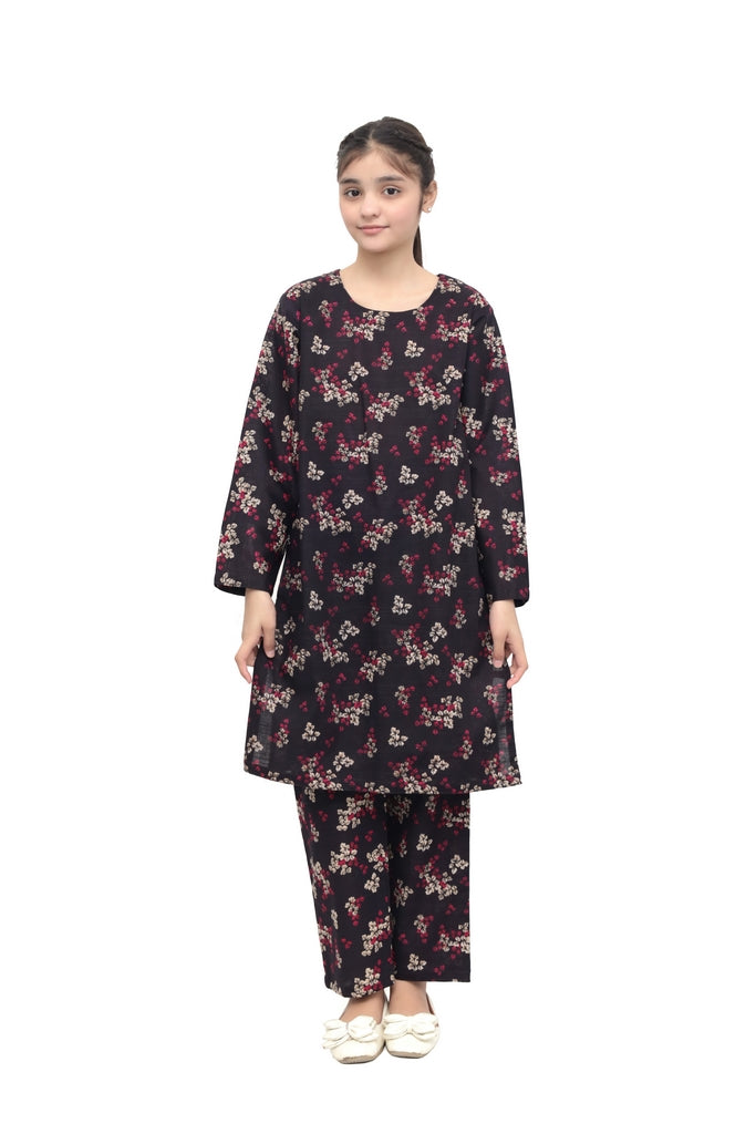 Liven up your little one's wardrobe with our Premium Quality Khaddar Colour Black, Printed with Biege and Dark Pink Flowers on 2 pc suit ! For Winters, this suit is not only high-quality, but also comfortable for all-day wear Casuals and Formals. Perfect for any stylish girl, this Stitched 2 pc suit is a must-have.